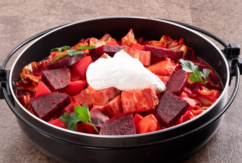 旬の野菜の甘さをじっくり煮込んだ、深いコクのあるボルシチ。