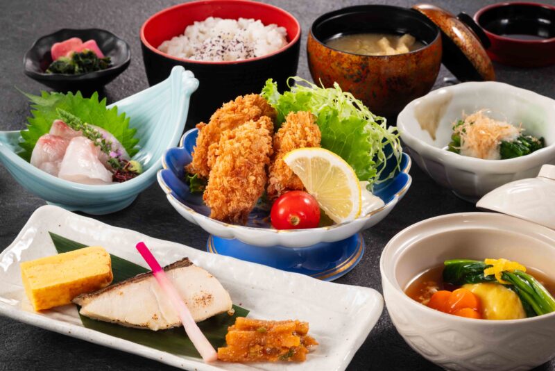 さっくりと揚がった牡蠣フライをはじめ、旨み豊かなお刺身、香ばしく焼き上げた沖目鯛など、