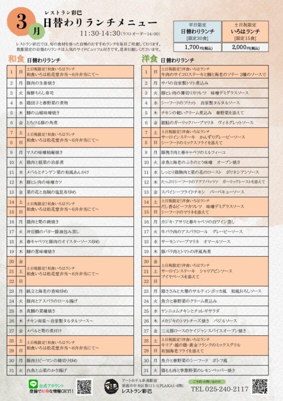 【3月】日替わりランチ カレンダー