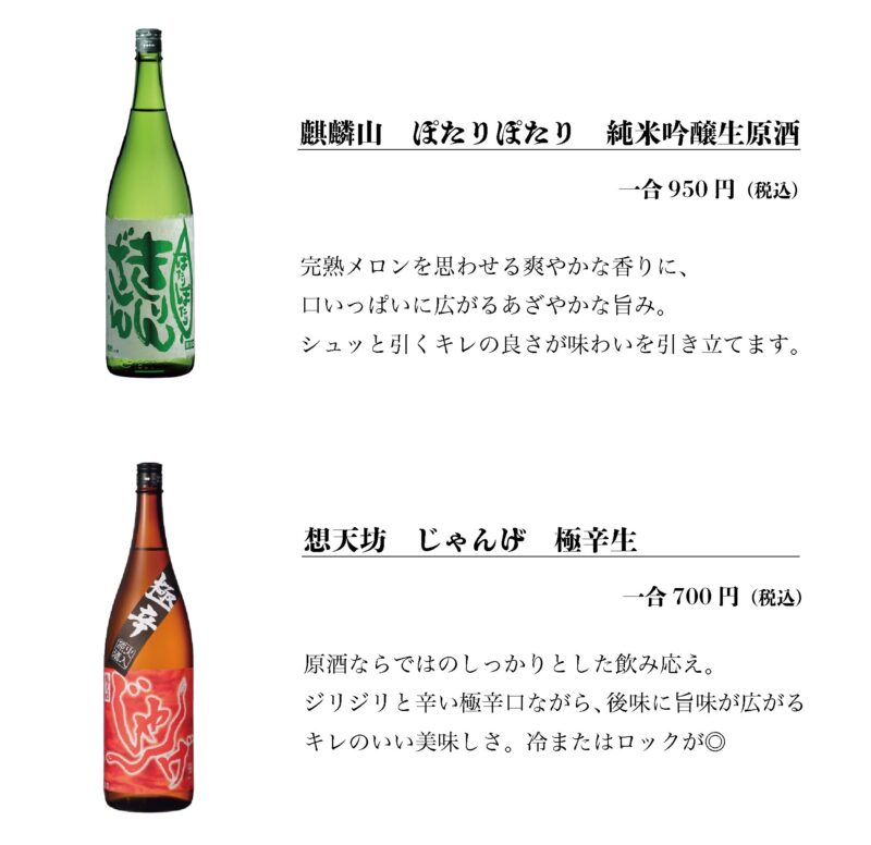 彩巴では新潟ならではの季節の一押し地酒をご用意しております。